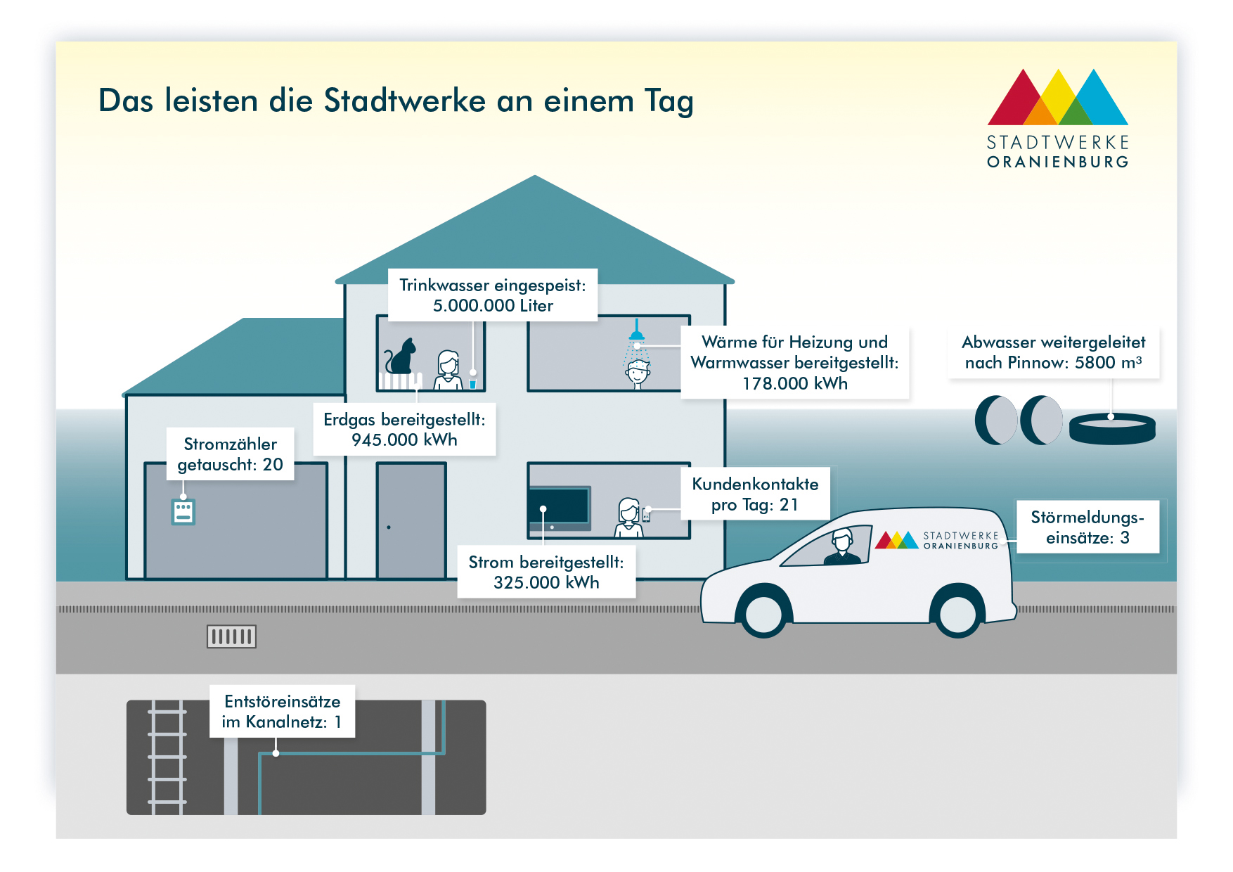 Auf eine Konstante kann sich jeder Oranienburger verlassen: die Versorgung mit Strom, Erdgas, Trinkwasser, Wärme und die Entsorgung von Abwasser. Gerade in Situationen wie sie dieses Jahr herrschen, steigt der Anspruch an die Stadtwerke als Betreiber kritischer Infrastrukturen. Die Stadtwerke Oranienburg nehmen diese Verantwortung, für die Stadt und seine Einwohner, wahr – 365 Tage im Jahr, 24 Stunden am Tag.